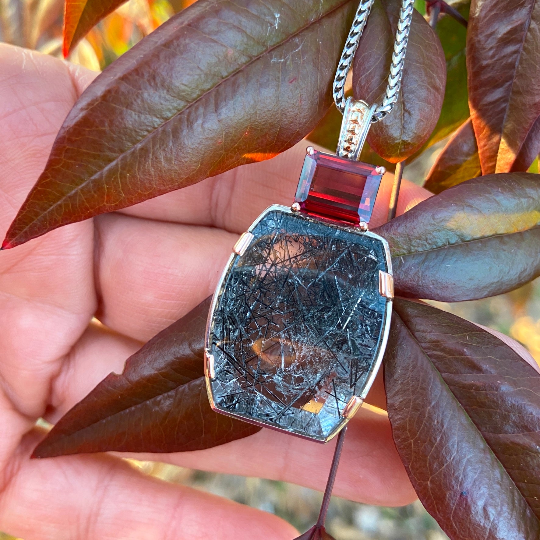 4.40 Rutilated Quartz with Rhodolite Garnet Pendant
